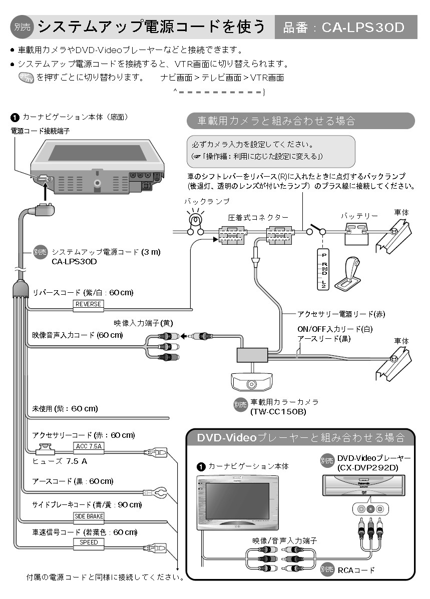 カーナビによって、バックに入れた時に自動でナビ画面からカメラの画像に切り替わるのか、ビデオモードにしてないと見れないのか、又、バックに入れたときだけ見れるのか、カメラモードにしてバックに入れて無くても常時見れるのか、の違いはあります。